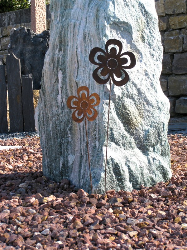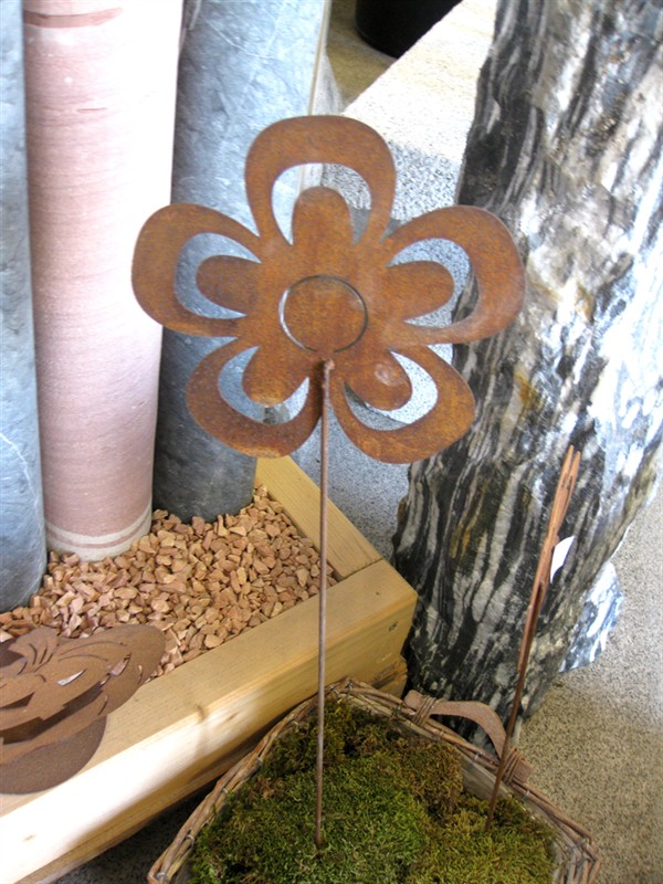 Wetterfeste Garten- oder Wohnraumdeko: Blumenstecker aus Edelrost verleihen Beeten, Pflanzkübeln oder Eingangsbereichen eine warme, natürliche Note im Landhausstil.