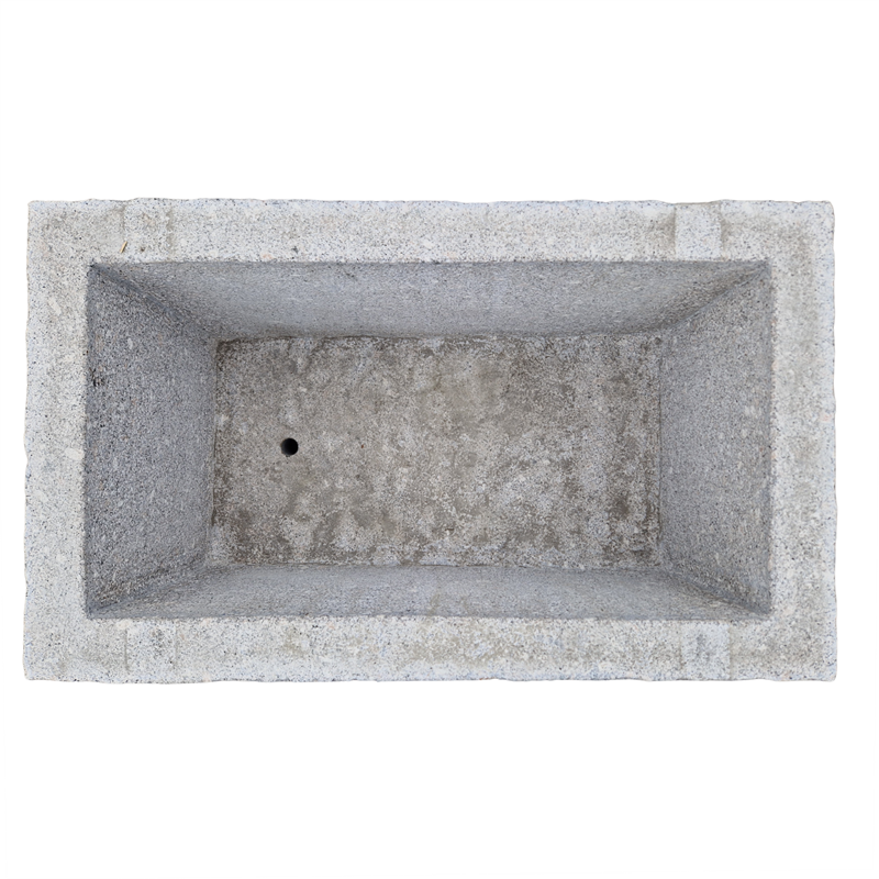 Mit den handlichen Maßen von ca. 100 x 60 x 50 cm eignet sich der Trog hervorragend für kleinere Gärten, als dekoratives Pflanzgefäß oder als Auffangbecken für Wasserspiele. Die integrierte Ablaufbohrung im Beckenboden sorgt für problemlosen Wasserablauf.