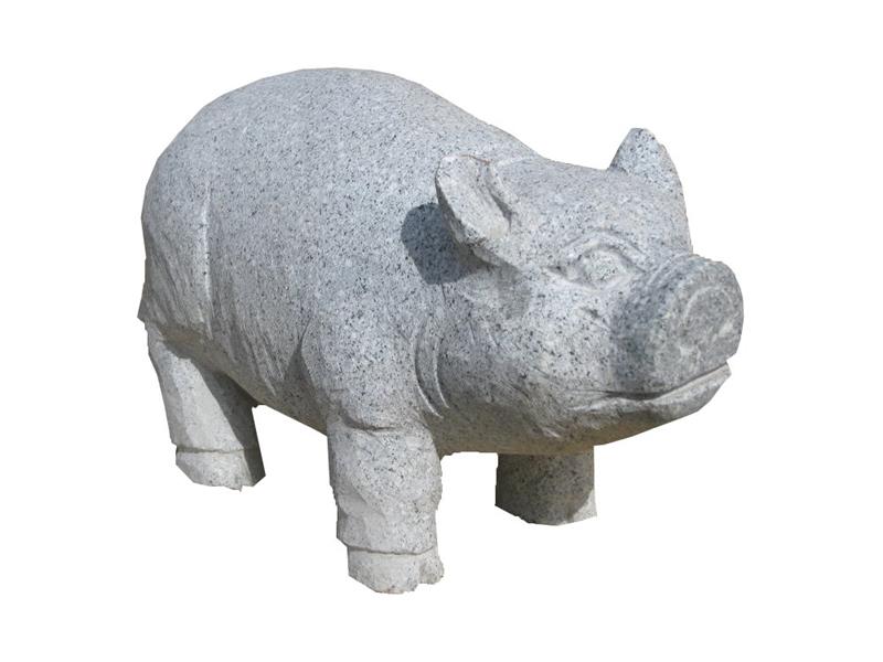 Dekoratives Schwein aus hellgrauem Granit, handgearbeitet und frostbeständig. Perfekt für Innen- und Außenbereiche.