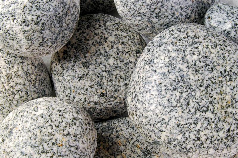 Granitzierkiesel Bälle Salz & Pfeffer, grau/schwarz, 100 - 200 mm Körnung, getrommelt,