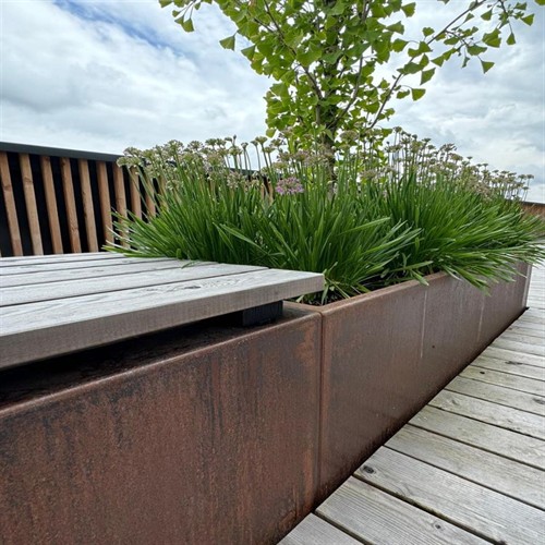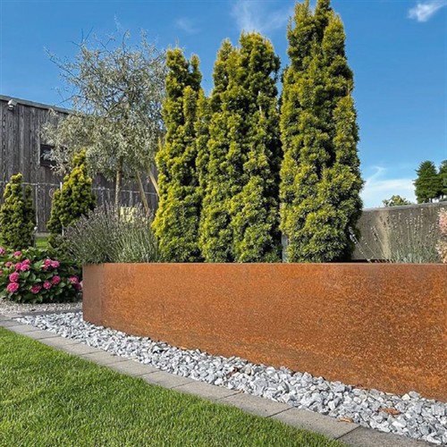 Die Hochbeete werden aus hochwertigem Cortenstahl gefertigt und im Auslieferungszustand ohne Rostpatina geliefert – diese entwickelt sich durch Witterungseinflüsse mit der Zeit.