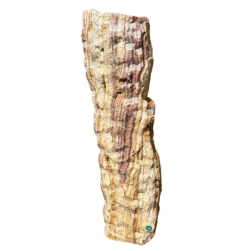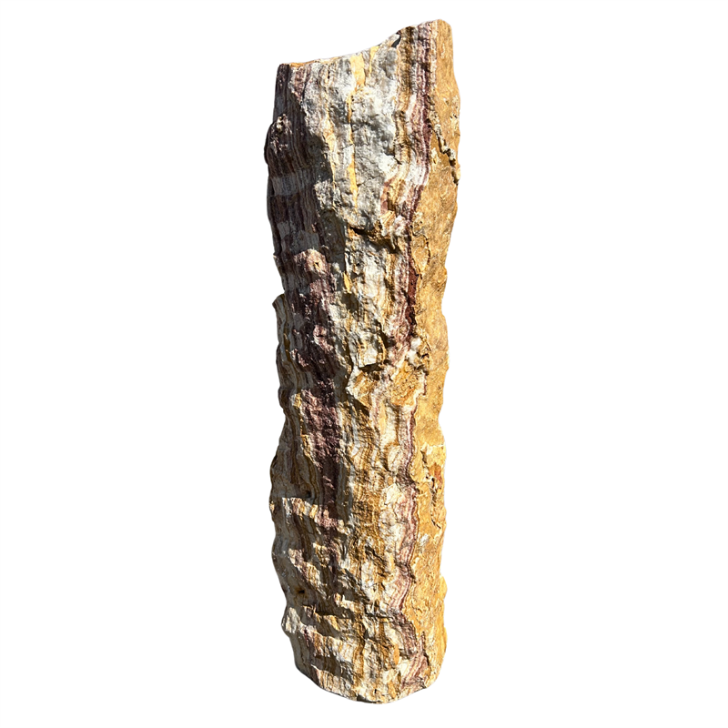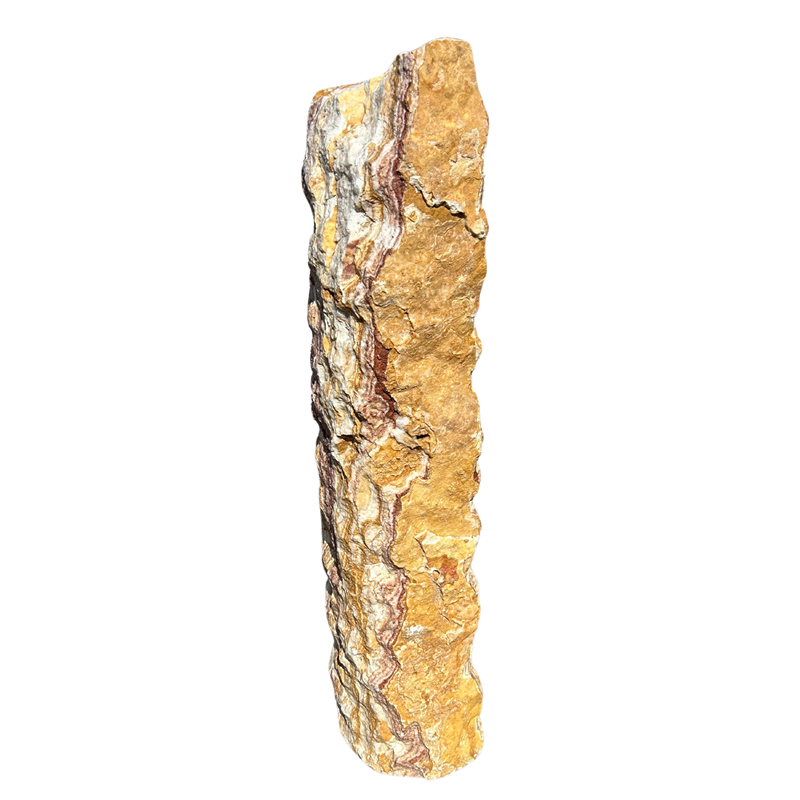 Der Monolith Angel Sparks ist ein imposanter Solitärstein aus echtem Onyx (Onice) mit Ursprung in der Türkei. Seine außergewöhnliche Maserung in erdigen Brauntönen, durchzogen von weißen und rötlichen Adern, macht ihn zu einem starken gestalterischen Element im Garten. Die naturbelassene Oberfläche unterstreicht die ursprüngliche Kraft des Steins. Er ist in unterschiedlichen Höhen zwischen 25 und 200 cm verfügbar und eignet sich hervorragend für moderne, naturnahe oder auch kontrastreiche Gestaltungskonzepte im Außenbereich.