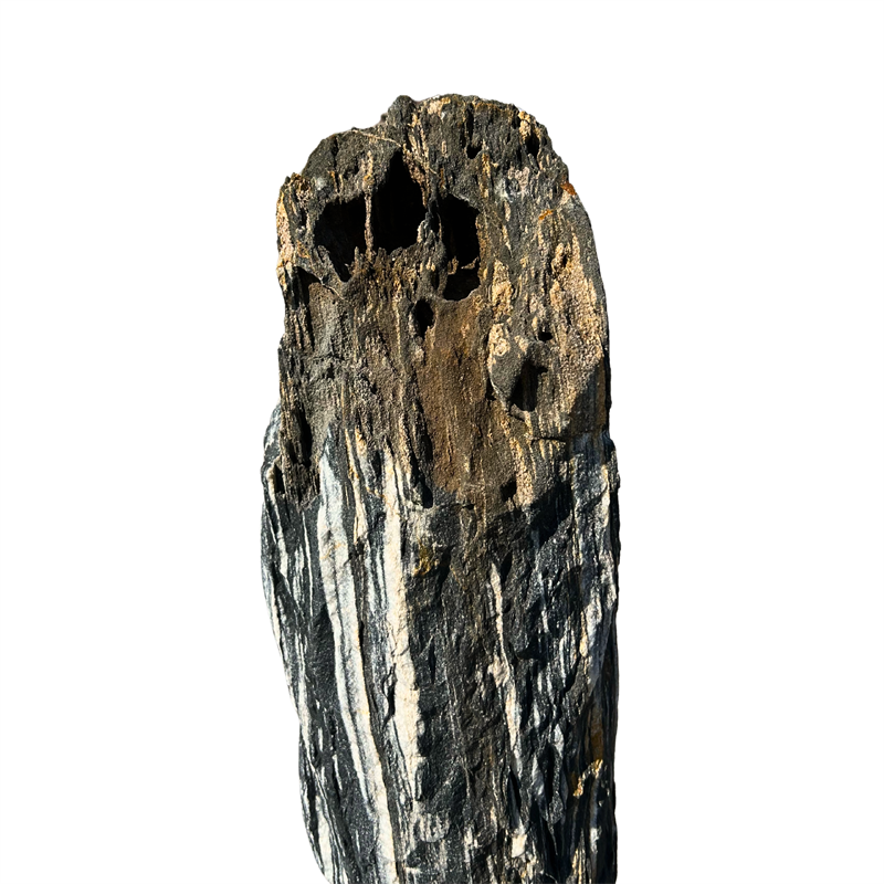 Der Monolith Zebra ist ein echter Blickfang für jeden Garten oder Außenbereich. Seine wilde, natürliche Maserung in Schwarz-Weiß erinnert an das Muster eines Zebras und macht jedes Stück zu einem einzigartigen Unikat. Gefertigt aus einer hochwertigen Kombination aus Marmor und Quarzit, bietet dieser Naturstein nicht nur ein eindrucksvolles Design, sondern auch höchste Widerstandsfähigkeit gegen Witterungseinflüsse. Die natürliche Oberfläche unterstreicht den ursprünglichen Charakter des Materials.