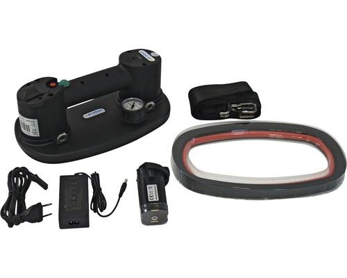 FXAH-120-GRABO-EU-GREENLINE: Vakuum-Handverlegegerät, Ladegerät (Mehrbereichsspannung 110 V bis 240 V) 2 x Lithium-Ionen-Akku, Tragegurt, Ersatz-Schwammgummidichtung und Ersatzfilter.