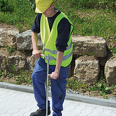Zum Ausrichten der noch nicht abgerüttelten Verbundsteine