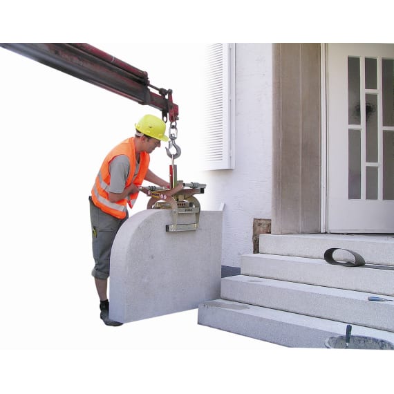 Geieignet zum Greifen und Versetzen von Trittstufen, Bordsteinen, Randwinkeln und dergleichen mit einem Hebezeug.