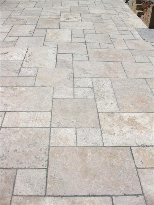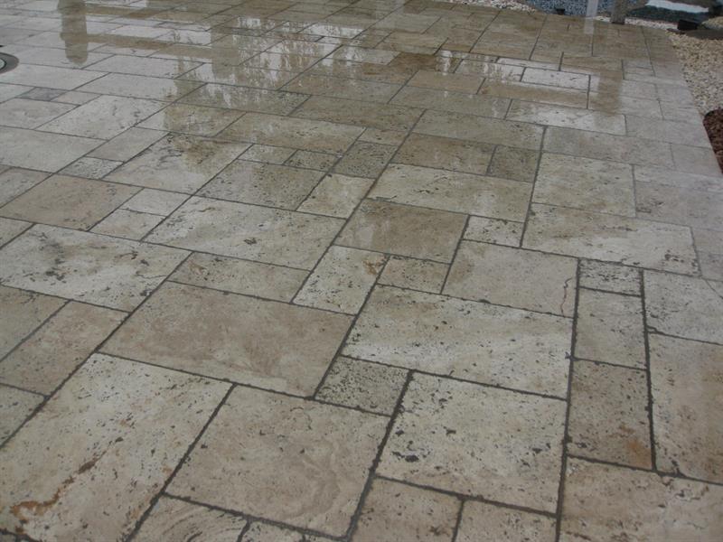 Installation: Grundsätzlich ermöglicht die Stärke von 3 cm, dass Verlegen in Splitt. Da beim RÖMISCHEN VERBAND jedoch auch Kleinformatige Platten enthalten sind, empfehlen wir die Verlegung in Einkornbeton. Dies verhindert das Wackeln von Platten und ermöglicht eine sichere Verfugung. Bitte beachten Sie, dass Sie bei hellen Platten wie Travertin unbedingt einen weißen Natursteinkleber für Innen und Außen verwenden sollten. Wir empfehlen hierzu Carrament weiß von PCI. Außerdem empfehlen wir eine Imprägnierung vor Verlegung mit Crystal Compact S1. Sollten Sie nach Verlegung imprägnieren, empfehlen wir nach Reinigung und Verfugung eine Imprägnierung mit Crystal Compact S2.