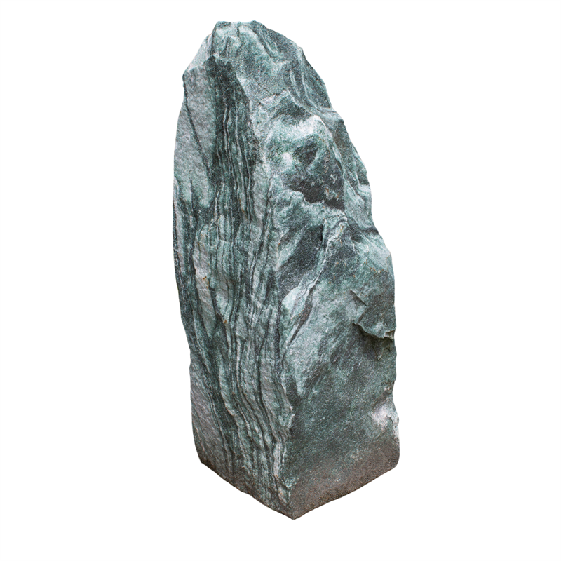 Der Atlantis Findling / Monolith – Punta Artic Green ist ein imposanter Naturstein aus norwegischem Quarzit, der durch seine spitze, schlanke Form und die markant grünlich-graue Farbgebung besticht. Die Oberfläche ist naturbelassen und bringt die raue, ursprüngliche Struktur des Quarzits voll zur Geltung. Jeder Monolith ist ein Unikat und in Höhen von ca. 80 bis 250 cm verfügbar – perfekt als Solitärstein, in Gruppen oder als Landmarke im Garten.