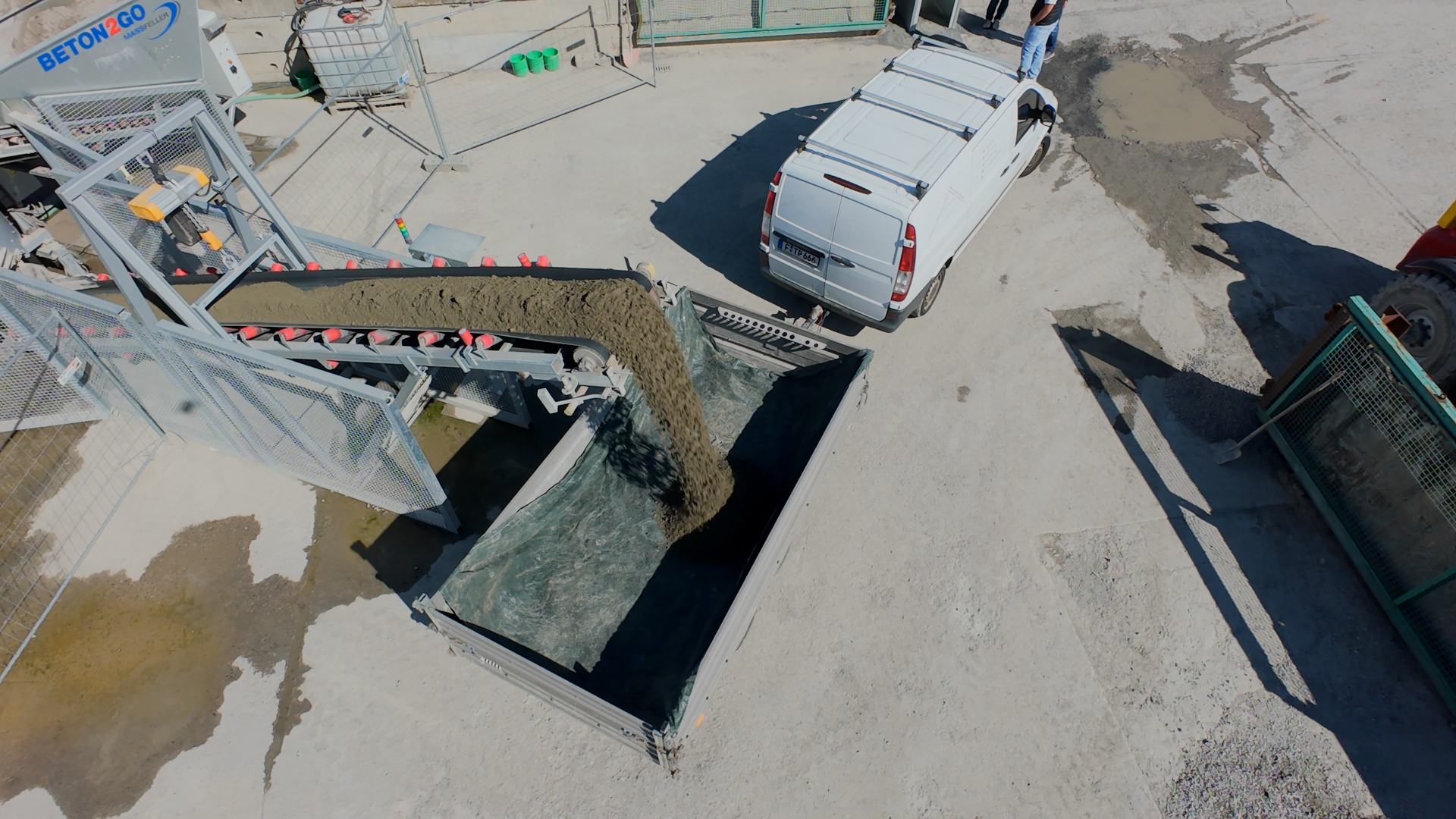 Abfüllen: Über das Förderband wird der frische Beton in ihren Hänger/LKW gefördert.