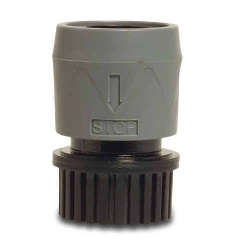 Die Flotide Kupplung mit 3/4" Innengewinde und Klickmuffe mit Wasserstopp ermöglicht den schnellen Anschluss von Bewässerungszubehör an feste Gewindeanschlüsse – mit automatischer Wasserunterbrechung beim Abkoppeln. Ideal für sauberes Arbeiten in Ihrem Bewässerungssystem.