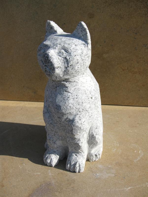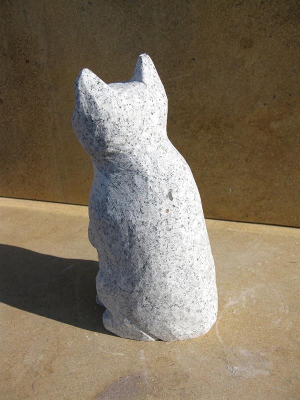 Handgearbeitete, sitzende Katze aus echtem Granit – wetterfest, zeitlos schön und ideal als liebevolle Gartendeko oder stilvoller Blickfang im Wohnbereich.