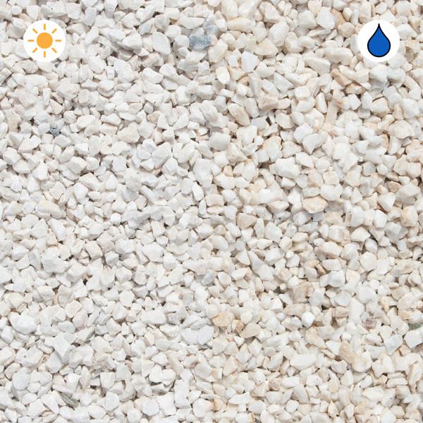 - Optisch angenehmer matt-weißer Marmorsplitt
