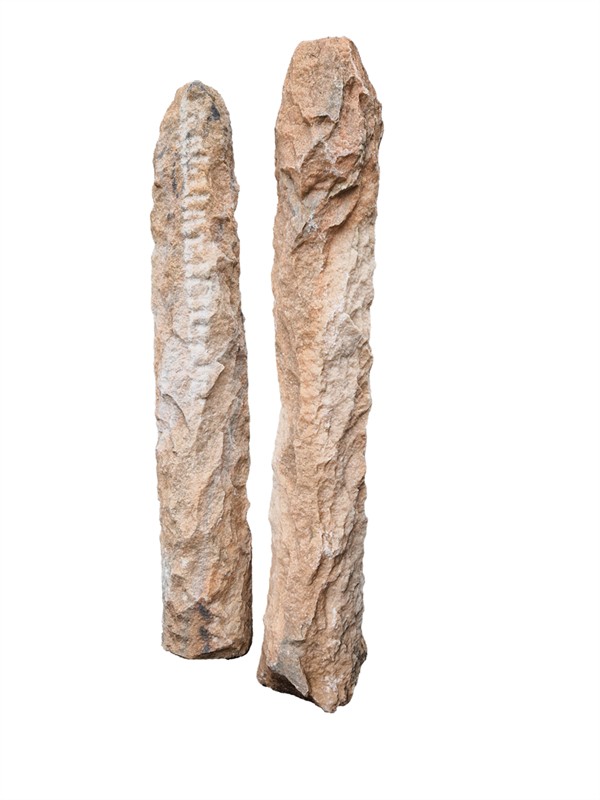Markanter Quellstein in warmen Orange- und Rosatönen mit gebohrtem Wasserlauf. Die bruchraue Oberfläche verleiht der Steinsäule eine natürliche Ausstrahlung. Ideal als imposantes Wasserspiel für Garten, Terrasse oder repräsentative Eingangsbereiche.