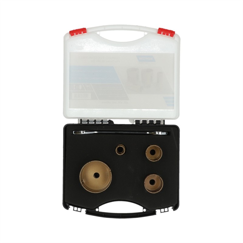 Dieses Set enthält vier Norton Clipper Extreme VB Trockenbohrkronen in praktischer Kofferaufbewahrung. Optimal für alle, die häufig mit Wand- und Bodenfliesen arbeiten. M14-Aufnahme für Winkelschleifer – werkzeuglos montierbar.