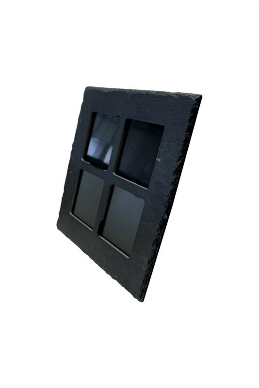 Eleganter Bilderrahmen aus handbekantetem Schiefer für 4 Fotos