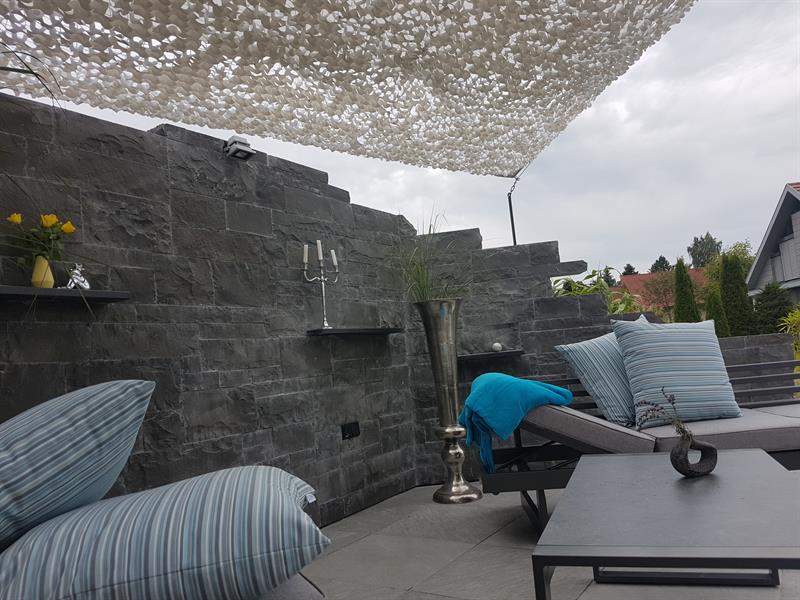 - Weiße Spitzhiebe durch manuelle Verarbeitung sind möglich und unterstreichen die Natürlichkeit des Steins.