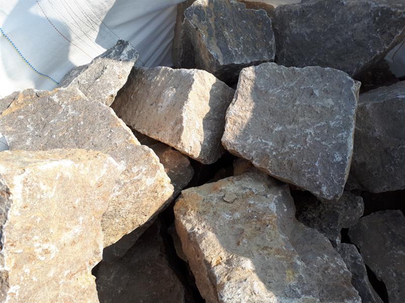 Muschelkalk-Bruchsteine in der Größenklasse LMB 10-40. Ideal für Steingärten, Einfassungen oder Natursteinmauern.