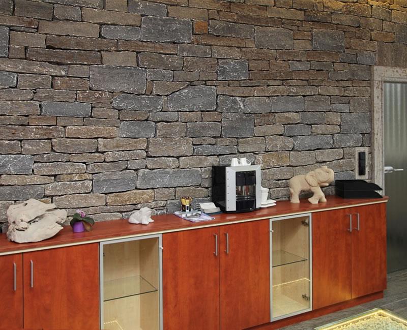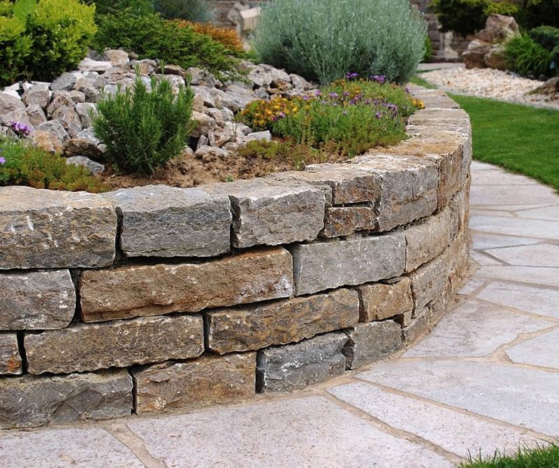 einen Mauerstein in "Trockenmauerstein Optik" mit teils gespaltenen Fugen und einer natürlichen Sicht und