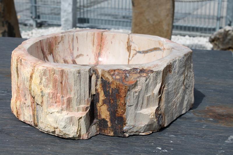 Das Naturstein Waschbecken Fossil I vereint natürliche Schönheit mit einzigartiger Farbvielfalt. In warmen Tönen von Rot-Rosa, Braun, Beige bis Gelb bringt es ein außergewöhnliches Design-Element in Ihr Badezimmer.